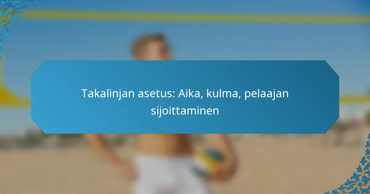 Takakentän syöttö lentopallossa on strateginen peli, jonka suorittaa pelaaja, joka on sijoittunut hyökkäyslinjan taakse, mahdollistaen takakenttäpelaajien osallistuvan hyökkäystoimiin. Onnistunut suoritus riippuu tarkasta ajoituksesta ja yhteistyöstä joukkuekavereiden kanssa, varmistaen, että pallo toimitetaan optimaalisella hetkellä. Ihanteelliset kulmat syötölle, tyypillisesti 45-60 astetta, parantavat pallon lentorataa ja helpottavat tehokasta iskijän sijoittumista, maksimoiden pisteytysmahdollisuudet.