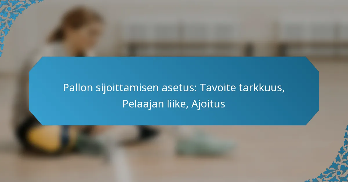Pallon sijoittaminen urheilussa on olennaista maalintekomahdollisuuksien maksimoimiseksi ja pelin yleisen laadun parantamiseksi. Se perustuu vahvasti kohteen tarkkuuteen, joka määrittää pelaajan kyvyn ohjata palloa tehokkaasti. Lisäksi pelaajan liike on ratkaisevassa roolissa sekä pallon sijoittamisen tarkkuuden että ajoituksen parantamisessa, mikä mahdollistaa urheilijoiden suorituskyvyn optimoinnin kentällä tai kentällä.