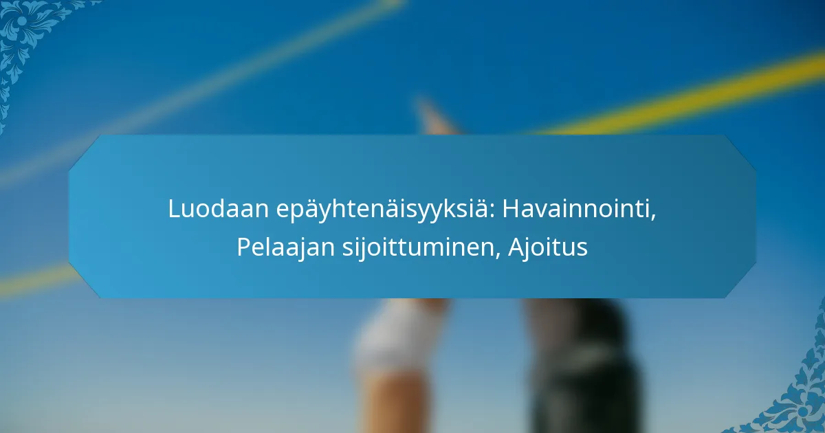 Havainnointi on ratkaisevan tärkeää epäyhtenäisyyksien luomisessa pelissä, sillä se mahdollistaa pelaajien tunnistaa mahdollisuuksia ja hyödyntää vastustajien heikkouksia. Analysoimalla tarkasti pelaajien sijoittamista ja ajoitusta joukkueet voivat parantaa kokonaissuoritustaan ja saada kilpailuetua.
